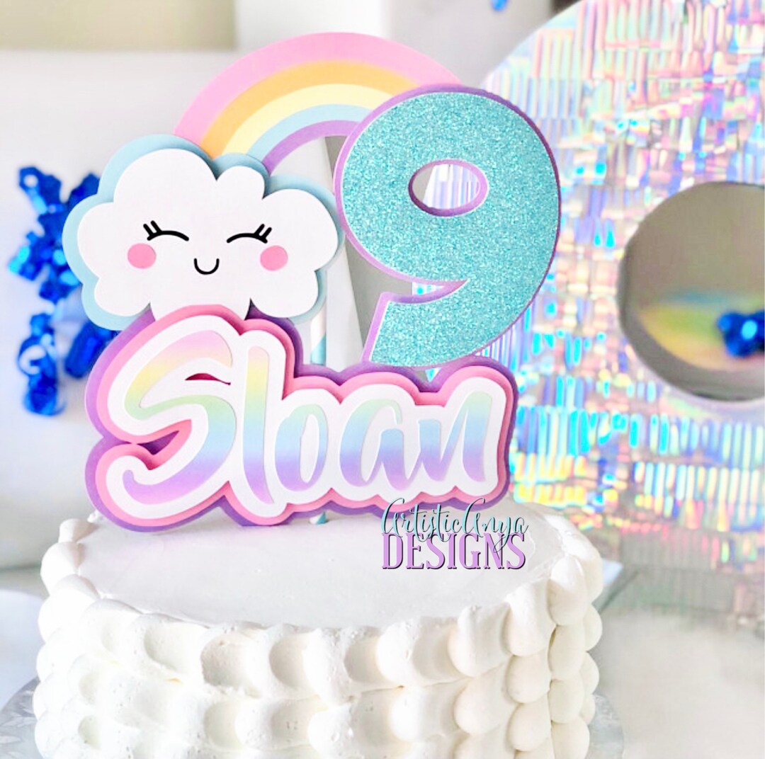 Cloud 9 Rainbow Cake Topper Rainbow Party Decorations Pastel Colors 9th Birthday Etsy Denmark